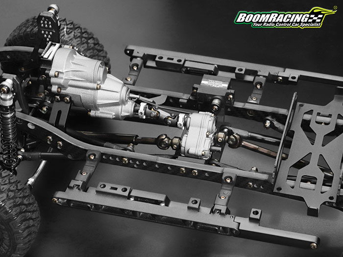 Podvozek BRX02 nabízí to nejlepší, co firma Boom Racing vyrábí, nešetřilo se opravdu na ničem. Podvozkové díly a převodovka jsou převážně vyrobeny z jakostní oceli a hliníku, směs pneumatik je velmi měkká a lepivá.